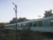 Ein Triebwagen der Baureihe 614 fährt auf Gleis 3 von Norden in den Bahnhof Gliesmarode ein. Im Vordergund das stillgelegte Gleis 1 mit üppigem Bewuchs.