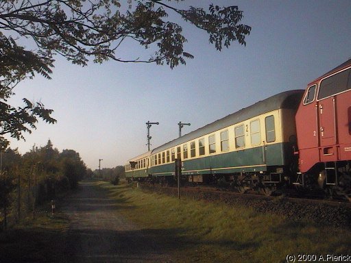 und ein auch noch ganz guter und noch älterer DR-Wagen jeweils in Originalfarbe hinter der Lok.