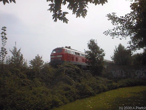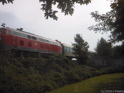 Ein Zug auf dem Weg nach Norden kurz hinter dem Bahnhof Gliesmarode.