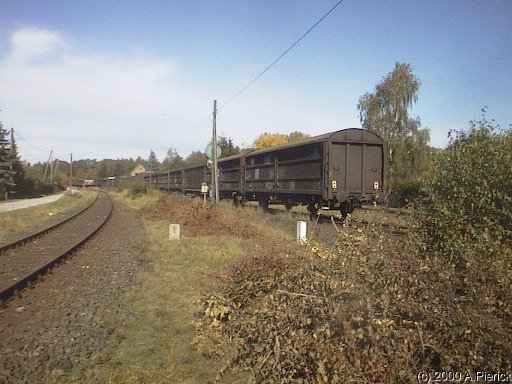 Der Güterzug nach Rühme, der einige Zeit lang relativ viele "schöne neue" rote DB-Cargo-Wagen mitführte, präsentiert sich nun wieder zum Großteil in einheitlichem Braun.