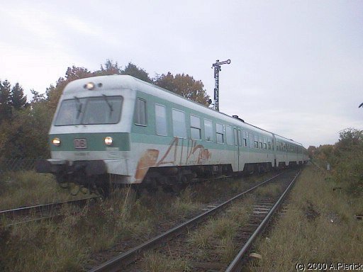 Ein Triebwagen der Baureihe 614 an einem Werktag-Nachmittag zweigt auf die Gifhorner Strecke ab.