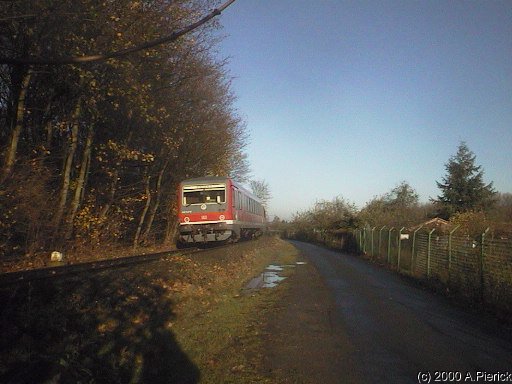am Nußberg entlang. Ein roter 628er wird hinter der