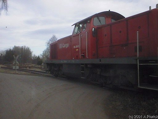 Die Vormittagsfahrt zum Kraftwerk mit zwei Kohlewagen wird heute ausnahmsweise von einer 294 übernommen.
