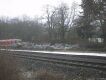 Der Morgenzug in Richtung Hauptbahnhof kommt um die Kurve gebrummt.