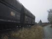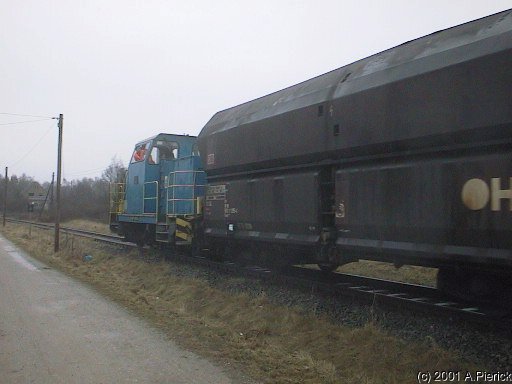 Bei grauem Januarwetter kommt eine VPS-Lok mit zwei Kohlewagen vorbeigefahren...