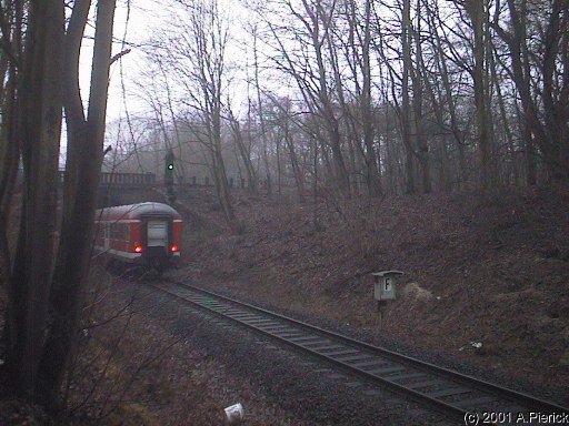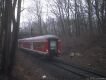 Der Zwei-Wagen-Zug im Einschnitt südlich des Bahnhofs Gliesmarode